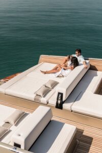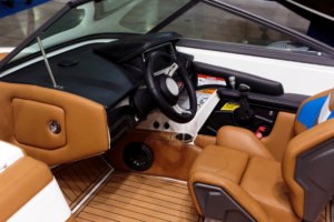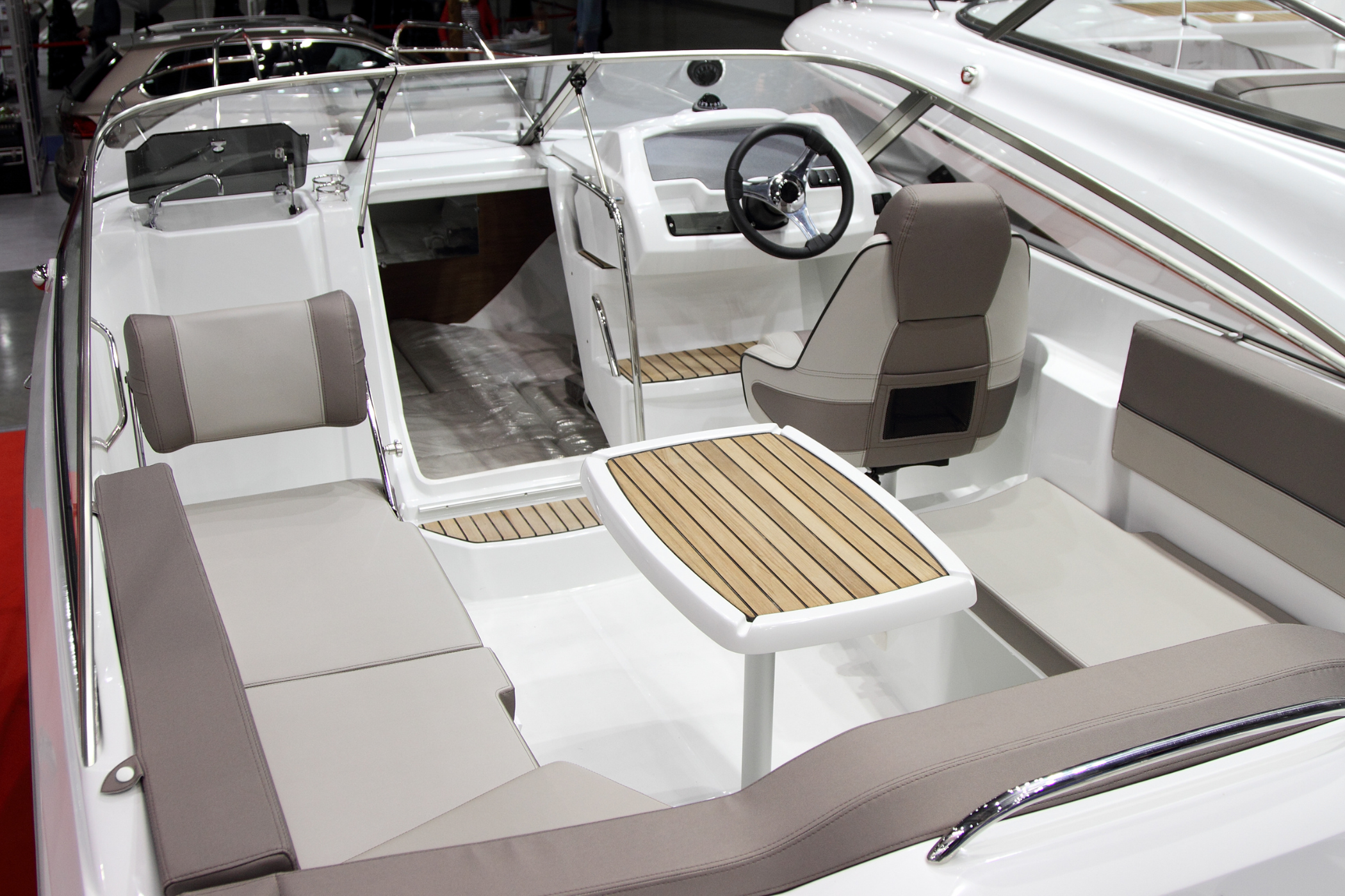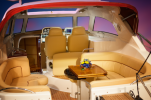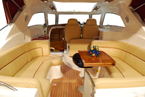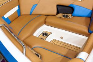 หนังสำหรับงานทางน้ำ เช่น เรือยอชต์ หรือเรือสปีดโบ๊ท ต้องมีความทนทานต่อรังสี UV น้ำเค็ม คลอรีน และเชื้อรา ได้เป็นอย่างดี ที่สำคัญที่สุดต้องผ่านมาตรฐานกันลามไฟ IMO FTP Code Part 8 รวมถึงมีความสามารถกันน้ำ 100% และทนต่อการเปลี่ยนแปลงของอุณหภูมิ เนื่องจากสภาพแวดล้อมกลางแจ้งที่ต้องใช้งานใกล้น้ำส่งผลกระทบต่อวัสดุได้โดยตรงหนังที่ไม่เหมาะสมจะซีดจาง แตกกรอบ หรือขึ้นราได้ง่าย