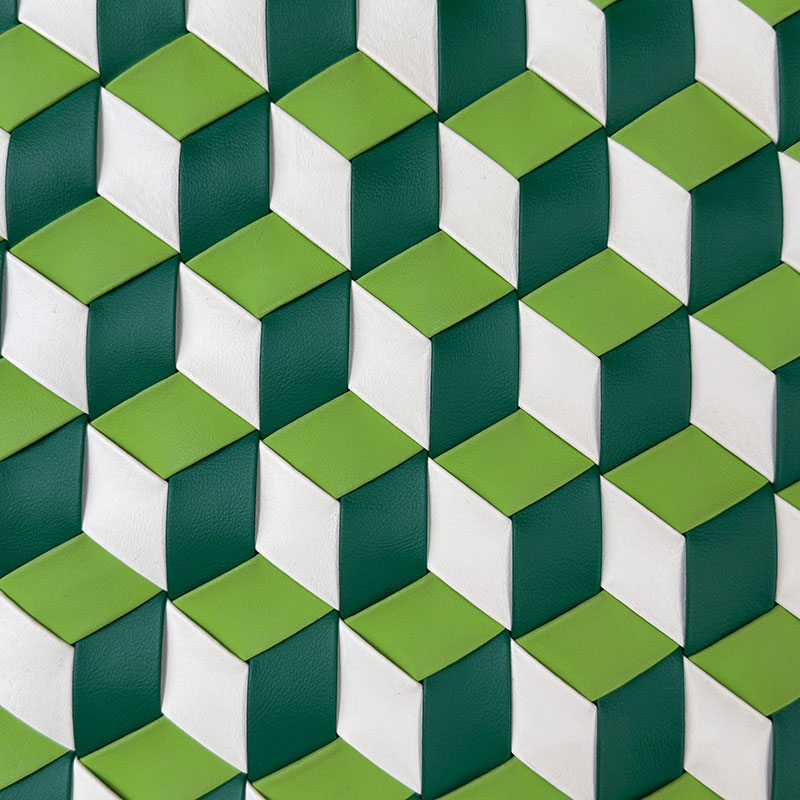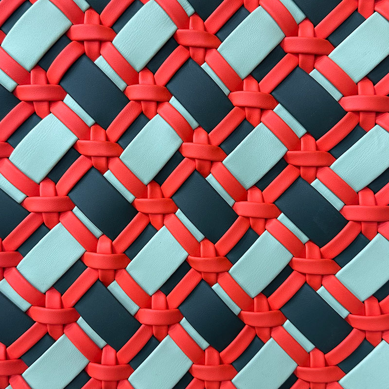 บริการถักทอและสานหนังให้เกิดเป็นลวดลายที่มีมิติและความสวยงาม เหมาะสำหรับงานที่ต้องการความแตกต่าง เช่น งานตกแต่งภายใน, หัวเตียง, เฟอร์นิเจอร์, และงานแฟชั่นกระเป๋าหรือรองเท้า เบาะรถยนต์ เป็นต้น
